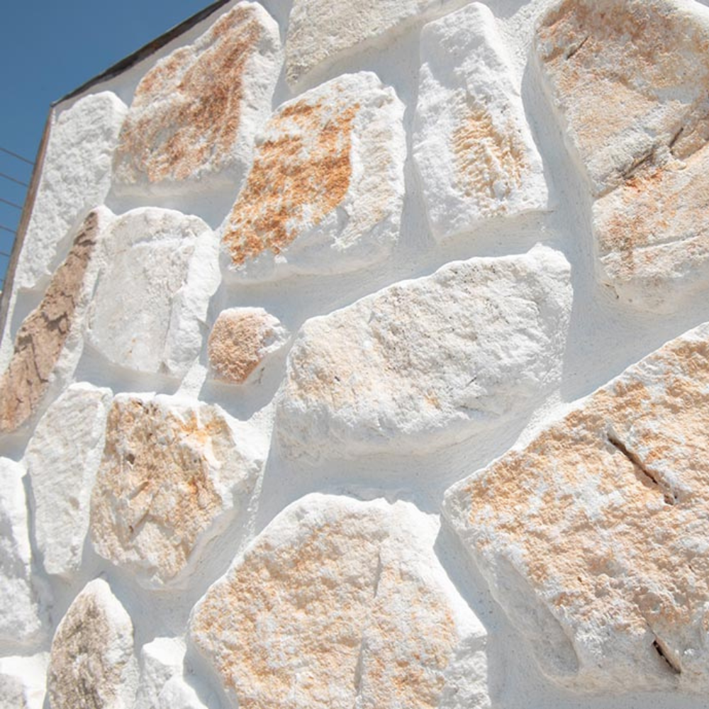 Από το ίδιο υλικό παράγονται και φυσικές γωνίες για την κάλυψη γωνιών σε τοίχους και κολώνες, ενισχύοντας έτσι το τελικό αποτέλεσμα δίνοντας την αίσθηση μιας εξ’ ολοκλήρου πετρόχτιστης κατασκευής.