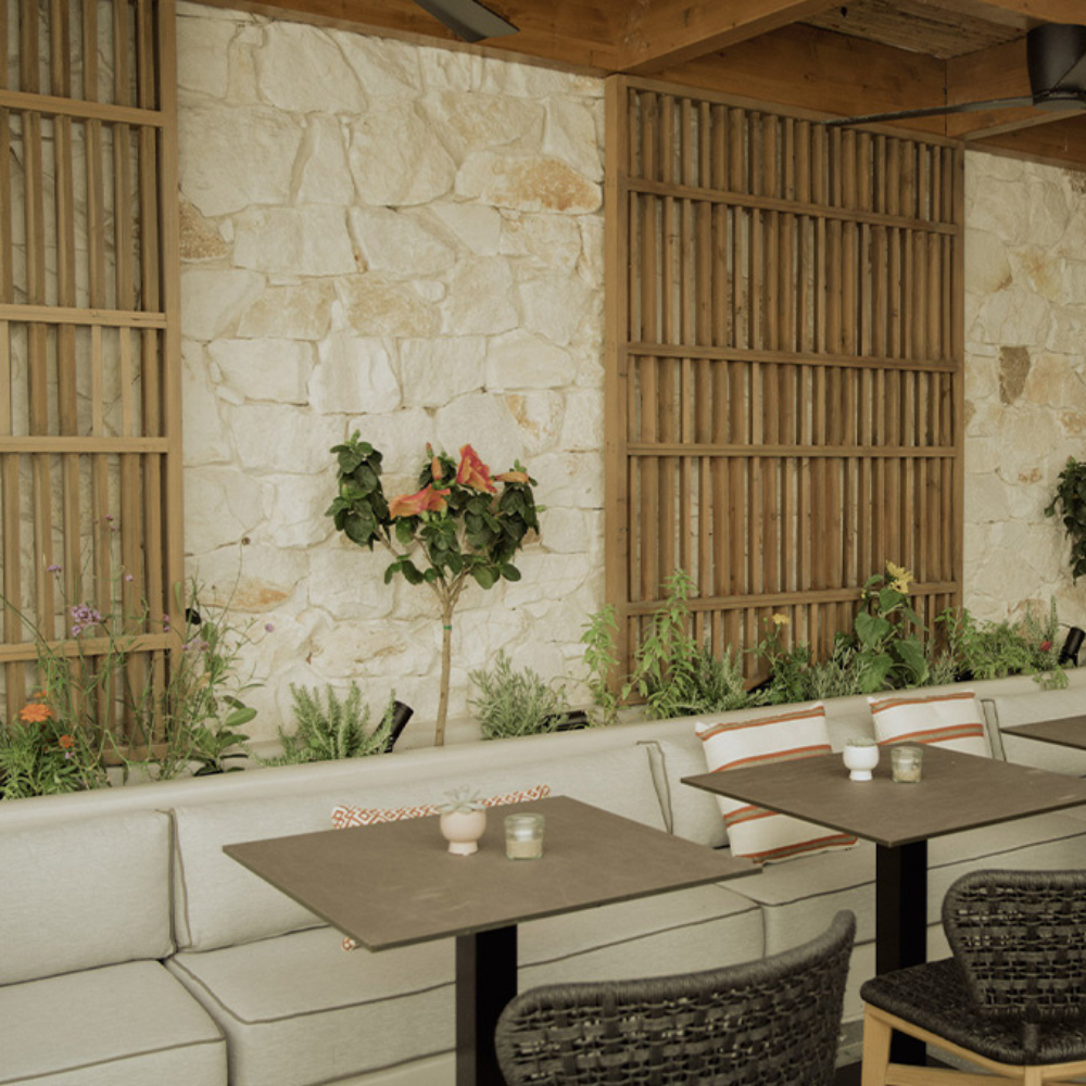 Η λιτότητα του λευκού και οι κρίσταλλοι του μαρμάρου Θάσου αποτελούν βασικά χαρακτηριστικά του Rock face, γι’ αυτό το συναντούμε συχνά σε μίνιμαλ αρχιτεκτονικές κατασκευές.