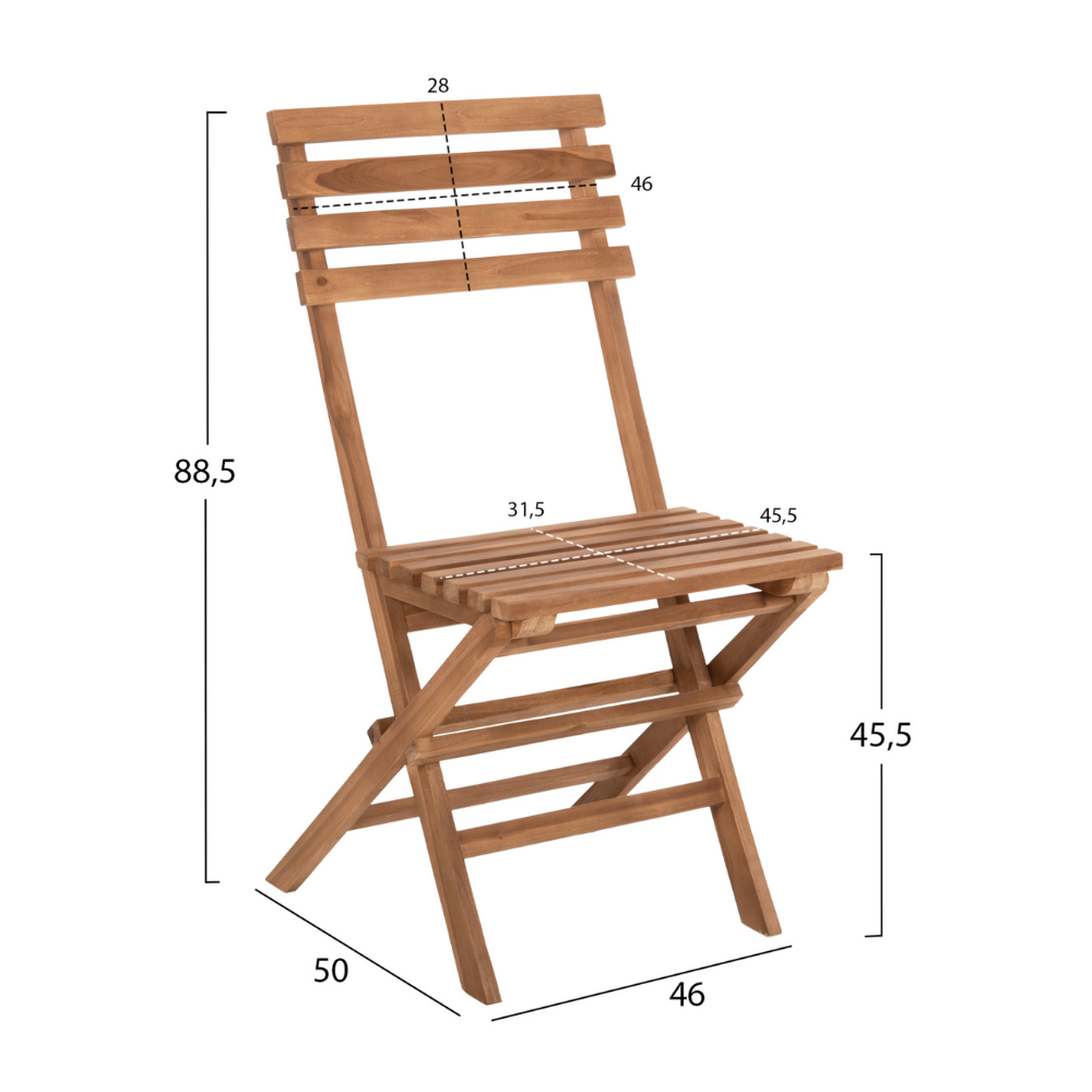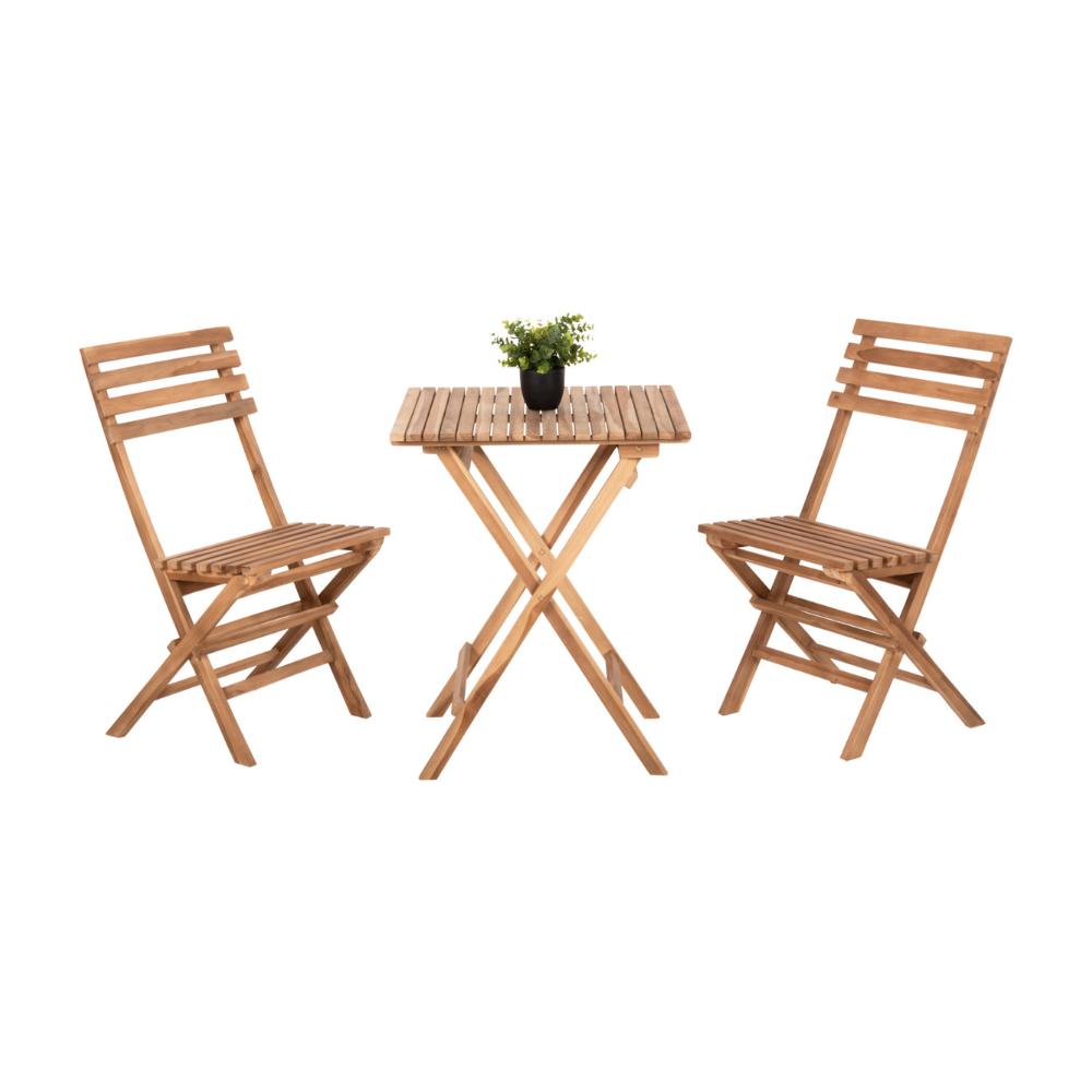 Το KENDYR είναι ένα σετ για εξωτερικούς χώρους, που αποτελείται από 2 πτυσσόμενες καρέκλες και ένα τετράγωνο πτυσσόμενο τραπέζι. Έχουν κατασκευαστεί από ποιοτικό ξύλο ΤΕΑΚ στο φυσικό του χρώμα. Αυτό το σετ είναι πρακτικό και ιδανικό για μικρότερους χώρους τόσο στο σπίτι όσο και σε επαγγελματικούς χώρους.