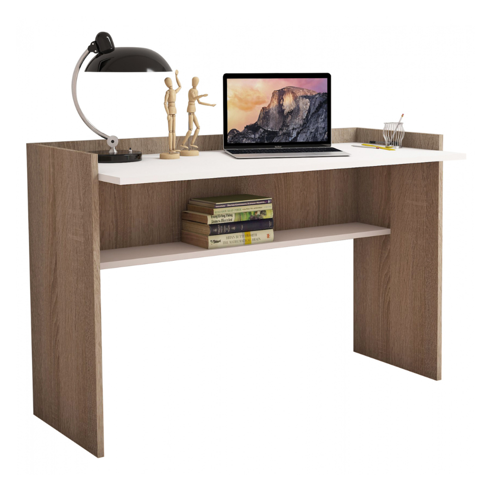 Γραφείο με κομψό και λιτό σχεδιασμό, κατασκευασμένο από ανθεκτική μελαμίνη πάχους 18 χιλιοστών υψηλής ποιότητας, σε λευκή και sonama απόχρωση.