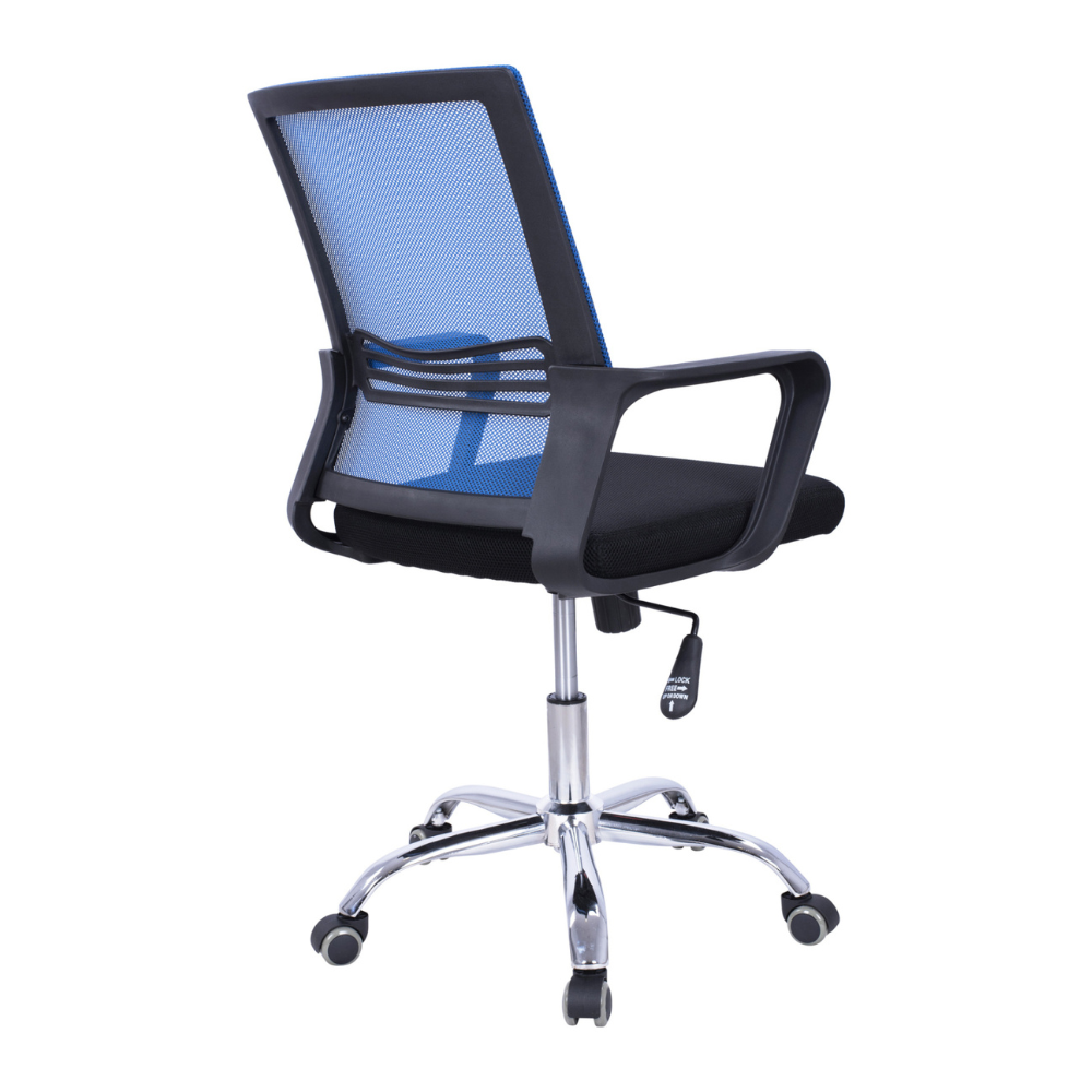 Το κύριο χαρακτηριστικό της καρέκλας είναι το μπλε ύφασμα της πλάτης που είναι mesh, δηλαδή διάτρητο. Αυτό σημαίνει ότι αφήνει την πλάτη να αναπνέει και να μην ιδρώνει προσφέροντας άνεση για πολύωρη χρήση.
