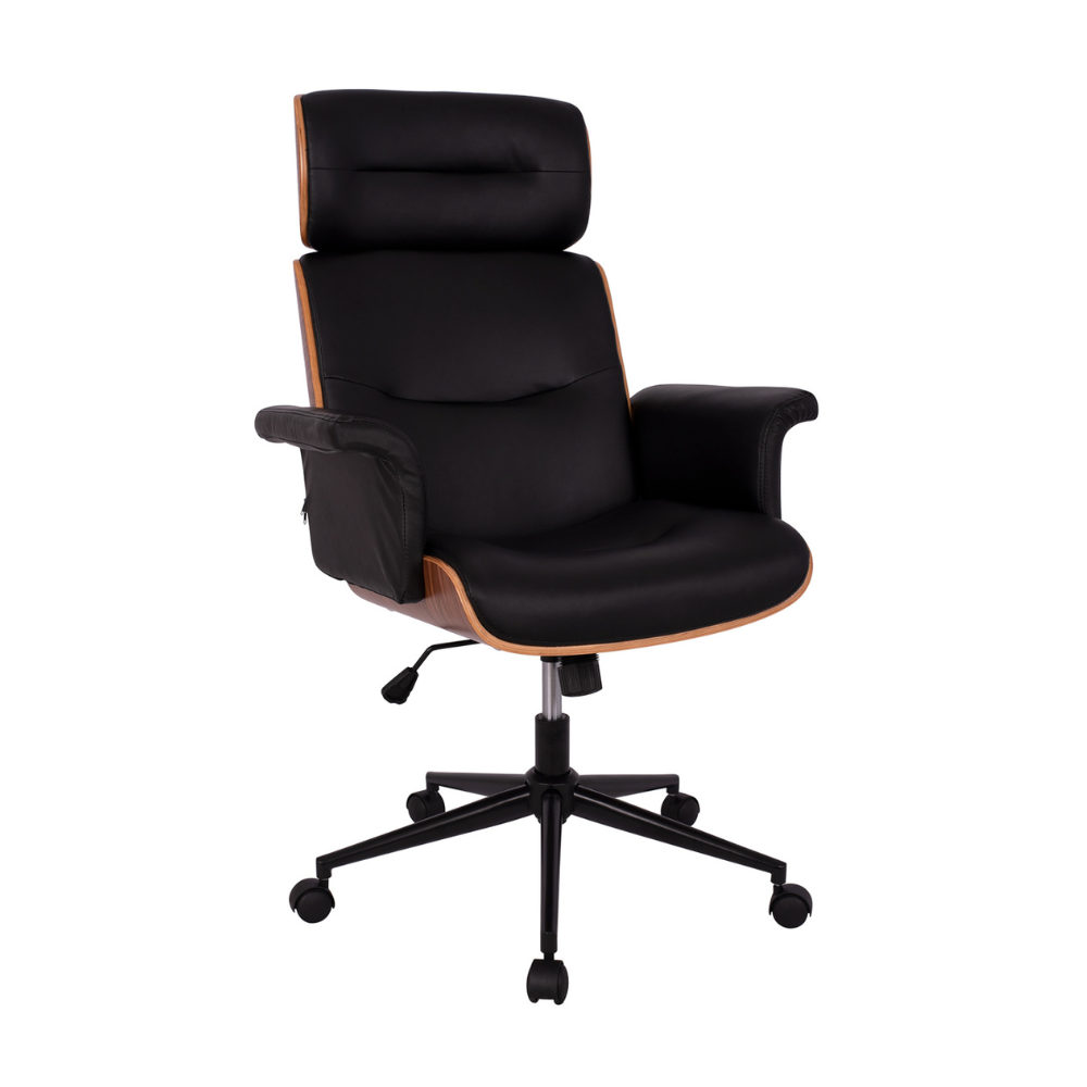 Καρέκλα γραφείου διευθυντική SUPERIOR PRO, με μοναδικό, μοντέρνο design σε συνδυασμό ξύλου σε καρυδί απόχρωση με όμορφες λεπτομέρειες και PU σε μαύρη απόχρωση.
