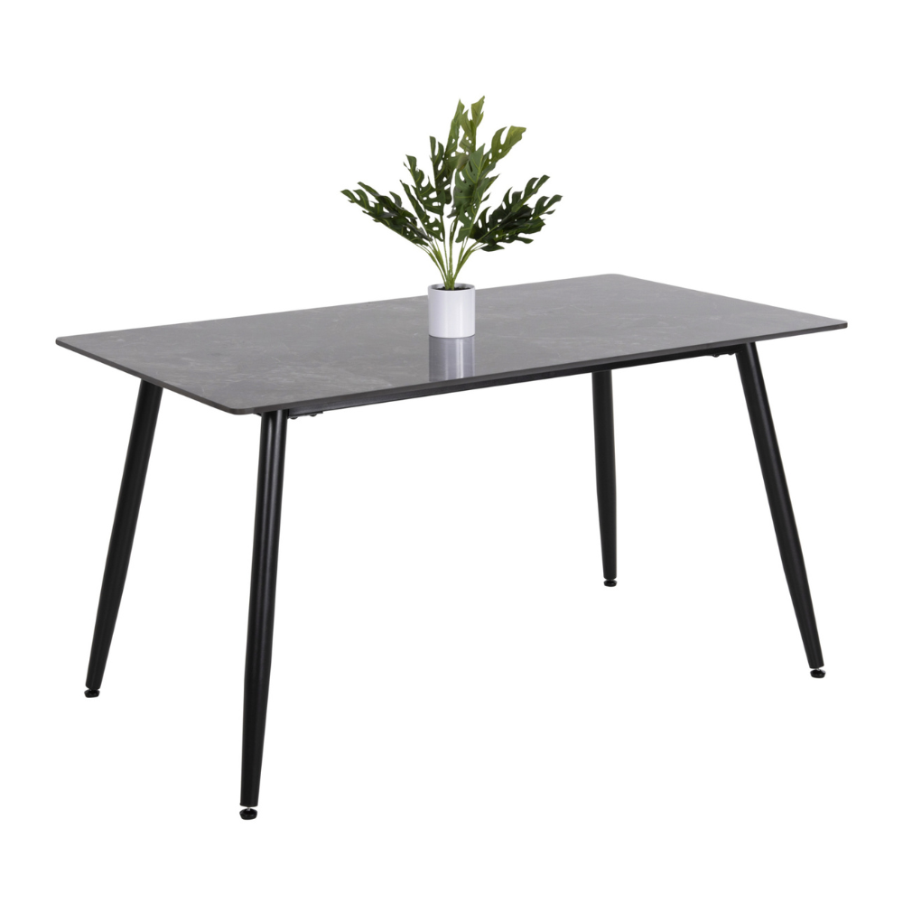 Το RAVEN είναι ένα τραπέζι τραπεζαρίας σε ορθογώνιο σχήμα με στρογγυλεμένες γωνίες. Η επιφάνεια είναι κεραμική σε χρωματισμό ΑΝΘΡΑΚΙ ΜΑΡΜΑΡΟΥ, ενώ τα πόδια είναι μεταλλικά σε ΜΑΥΡΟ χρώμα με ρεγουλατόρους ύψους στο κάτω μέρος, δημιουργώντας μια ελαφριά διχρωμία. Το συγκεκριμένο τραπέζι θα αποτελέσει σημείο αναφοράς σε οποιοδήποτε χώρο τραπεζαρίας ή εστίασης κι αν τοποθετηθεί.
