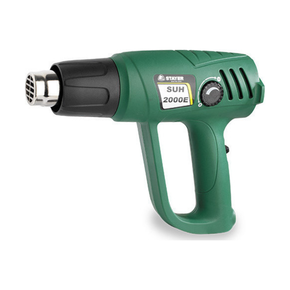 Ηλεκτρικό πιστόλι θερμού αέρα από τον κατασκευαστή Stayer με ισχύ 2000W. Χρησιμοποιείται σε διάφορες εργασίες όπως αφαίρεση μπογιάς, βερνικιού και κολλητικών ουσιών, διαμόρφωση, συγκόλληση και συρρίκνωση υλικών με καυτό αέρα. Έχει μεταβαλλόμενη θερμοκρασία με δυνατότητα προσαρμογής έως 600°C και δυνατότητα ρύθμισης ροής του αέρα, ώστε να τις ρυθμίζετε ανάλογα με την εργασία που έχετε να κάνετε.