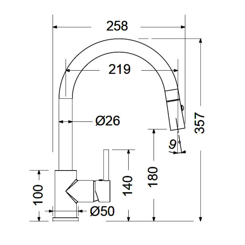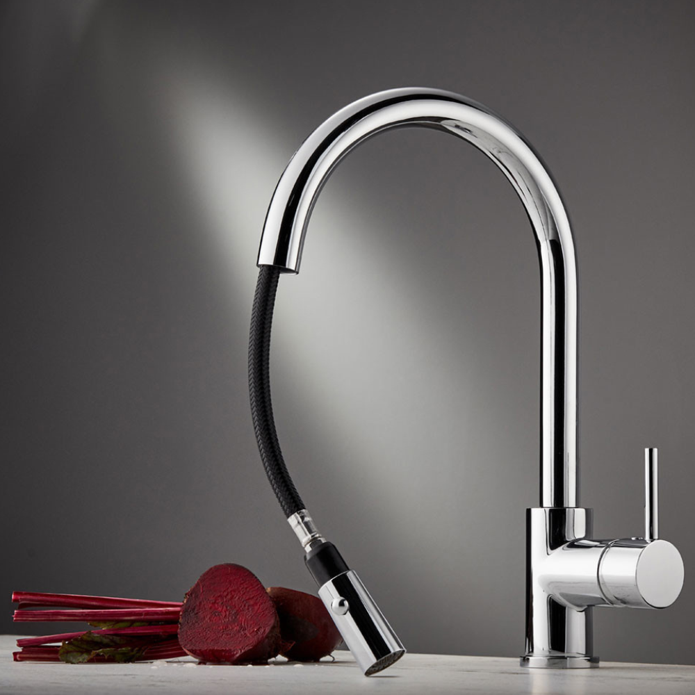 Υψηλό περιστρεφόμενο με ρουξούνι και συρόμενο ντους 2 λειτουργιών (shower / spray)