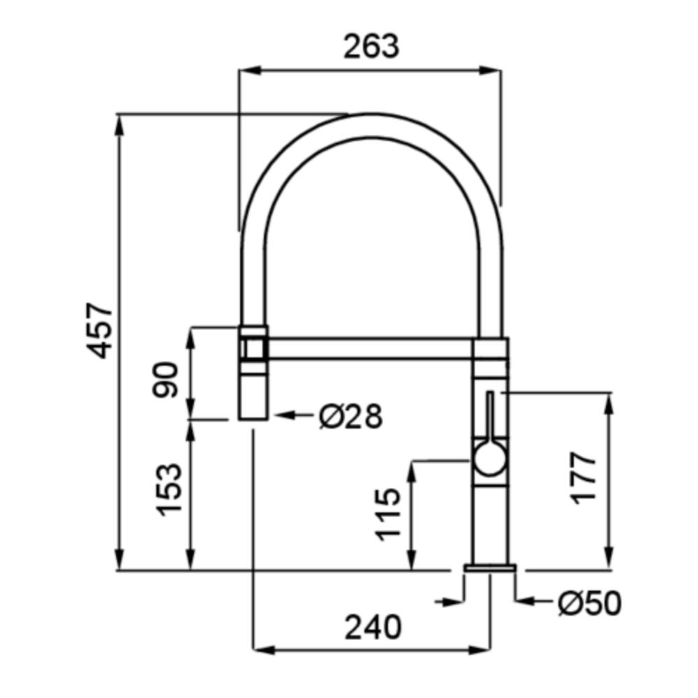 Μπαταρία ενός μοχλού με ψηλό περιστρεφόμενο ρουξούνι σιλικόνης και συρόμενο ψεκαστήρα WAVE