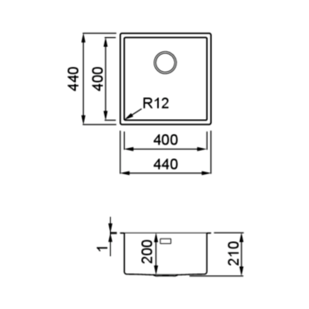 - Περίμετρος οπής: 43 x 43 R10 cm Ένθετος flat / 43 x 43 cm Filotop / Υποκαθήμενος 40,1 x 40,1 R13 cm