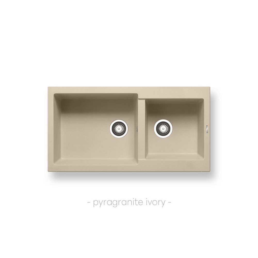 Οι νεροχύτες Pyragranite της PYRAMIS κατασκευάζονται από 80% υψηλής απόδοσης φυσικό χαλαζία, και 20% υψηλής ποιότητας ρητίνες και ενισχυτικά στοιχεία. Αυτό το μείγμα εξασφαλίζει εξαιρετική ανθεκτικότητα, υψηλή αντίσταση και μία λεία, κομψή επιφάνεια.