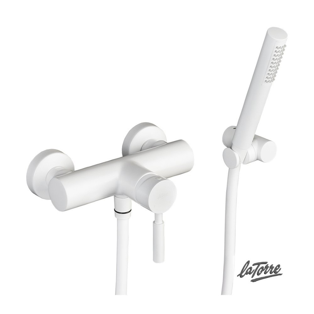 Μπαταρία ντουζιέρας θερμομικτική TECH με τηλέφωνο anticalcare, επίτοιχο στήριγμα τηλεφώνου & άθραυστο σπιράλ 1.5m